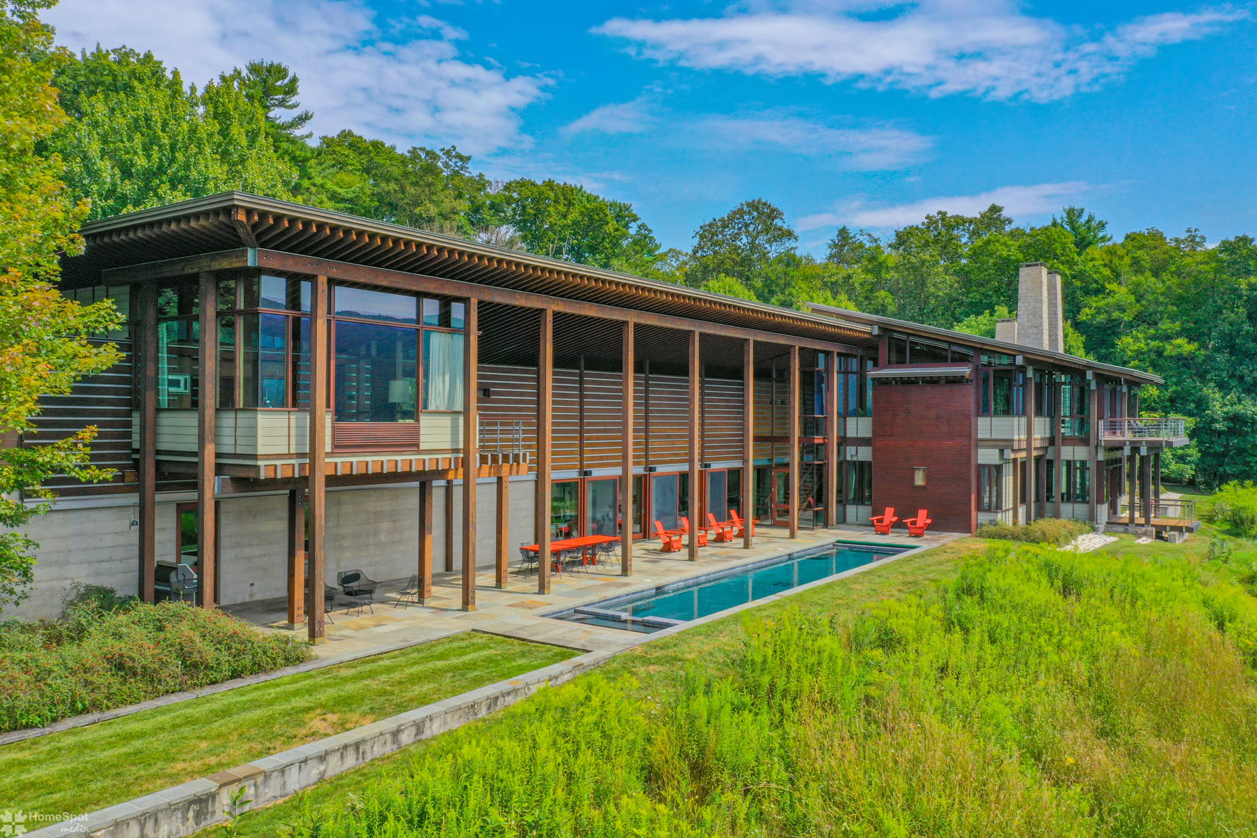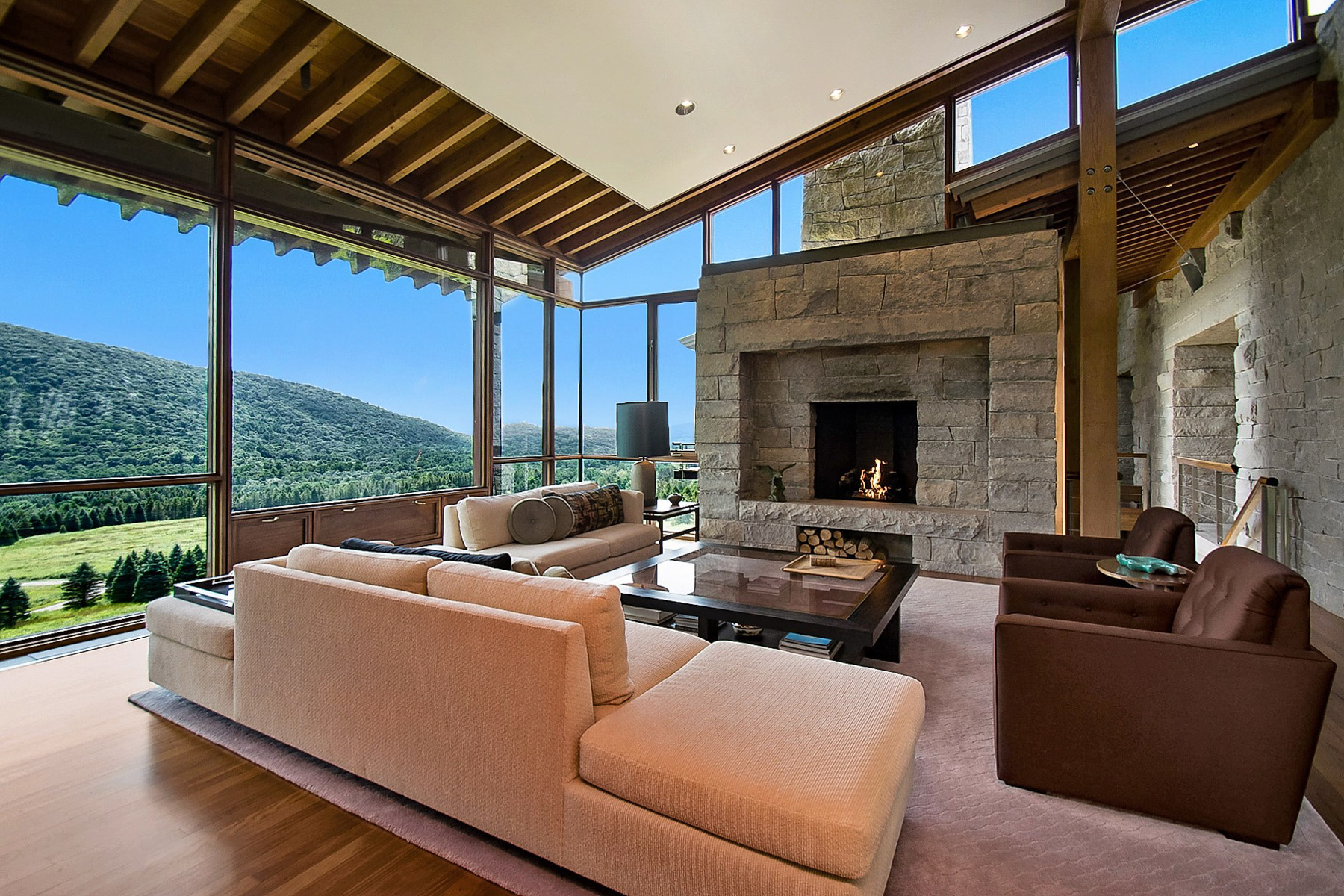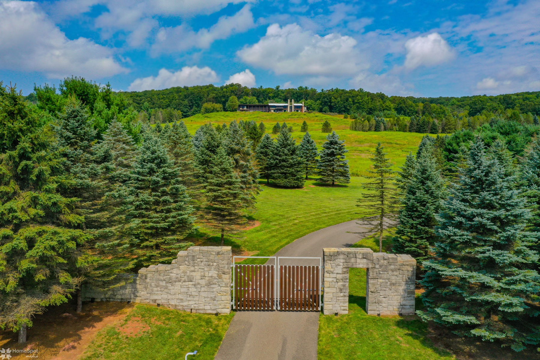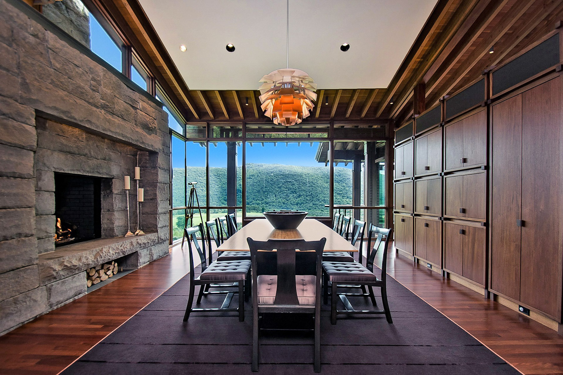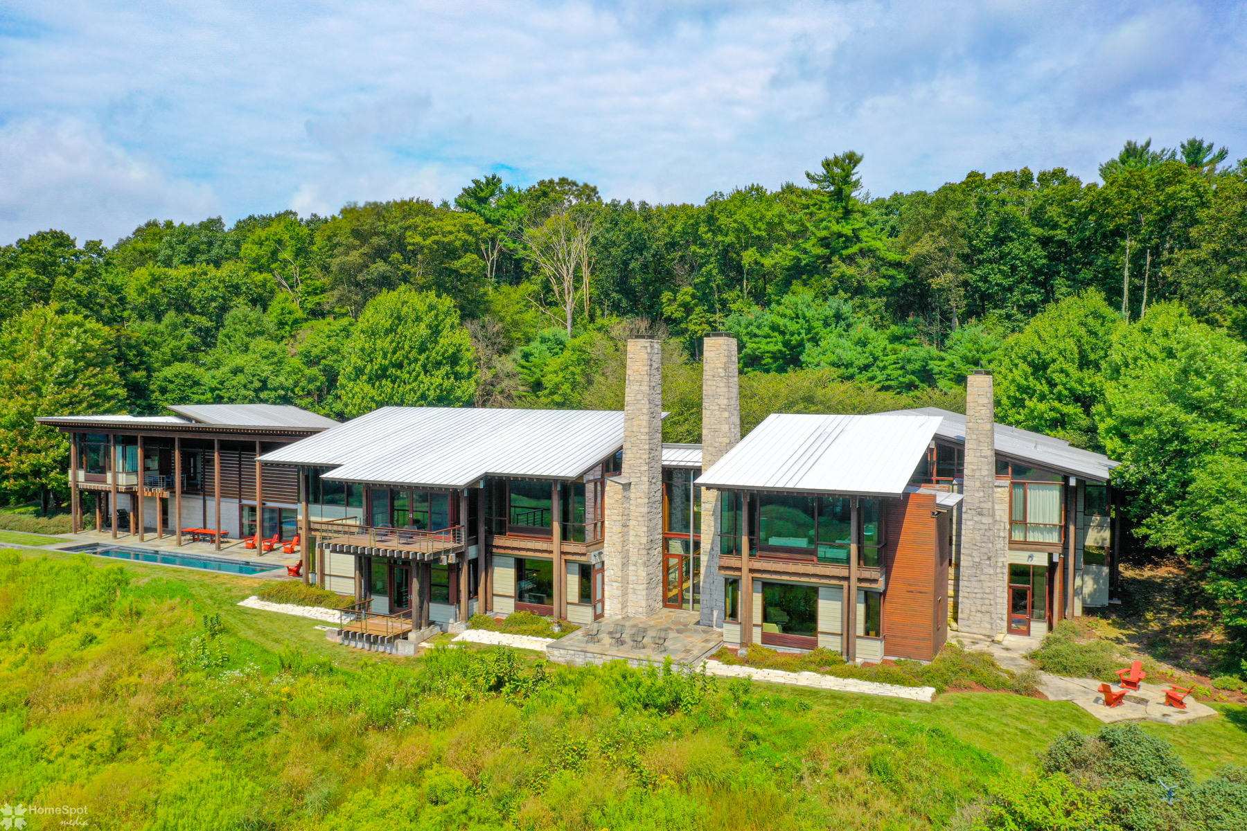 This absolutely majestic and award-winning family compound offers nearly 100 acres of extreme privacy adjacent to Hawk Mountain Sanctuary and its protected landscape of 1400 acres. The home was designed by the firm of celebrated architect Peter Bohlin- known for creating homes for both Bill Gates and Steve Jobs, as well as other iconic designs including Apple stores worldwide. The design is both durable and timeless, allowing the retreat to appear as if it is built into the hillside upon stone ruins from another time. A delicate exposed wood structural skeleton is juxtaposed against massive stone forms- providing a total of 6 fireplaces- and is surrounded by glass walls to allow the movement of sunlight and offer truly stunning views of the mountains and valleys. The finest materials and craftsmanship surround you, and every detail of the home was carefully planned. The property has been featured in "Architectural Digest" and is located within close proximity to both New York City and Philadelphia.