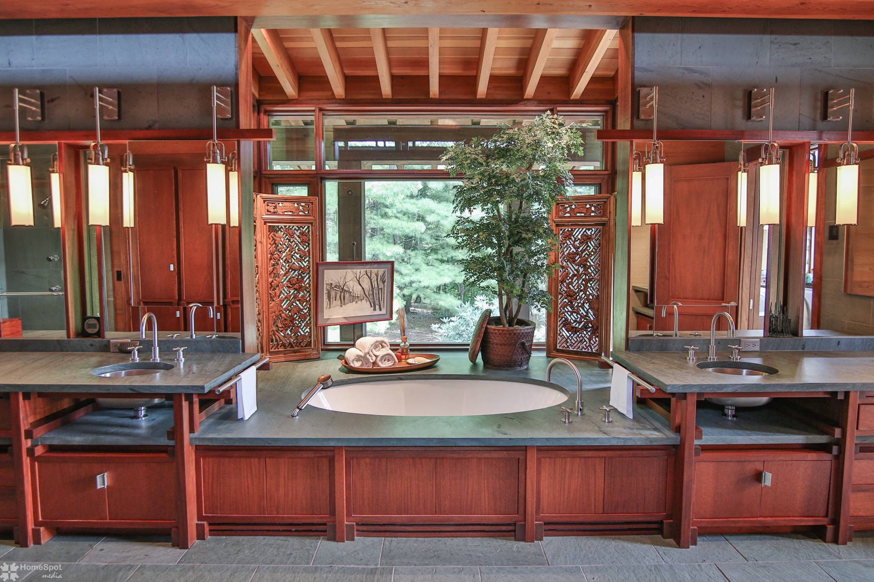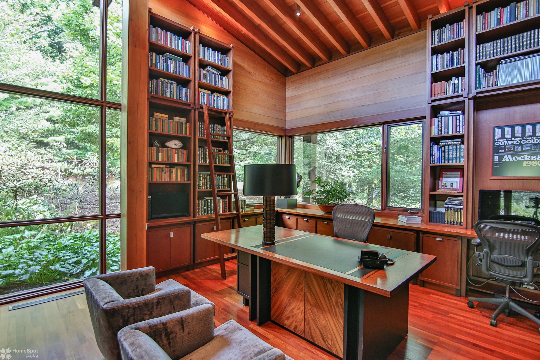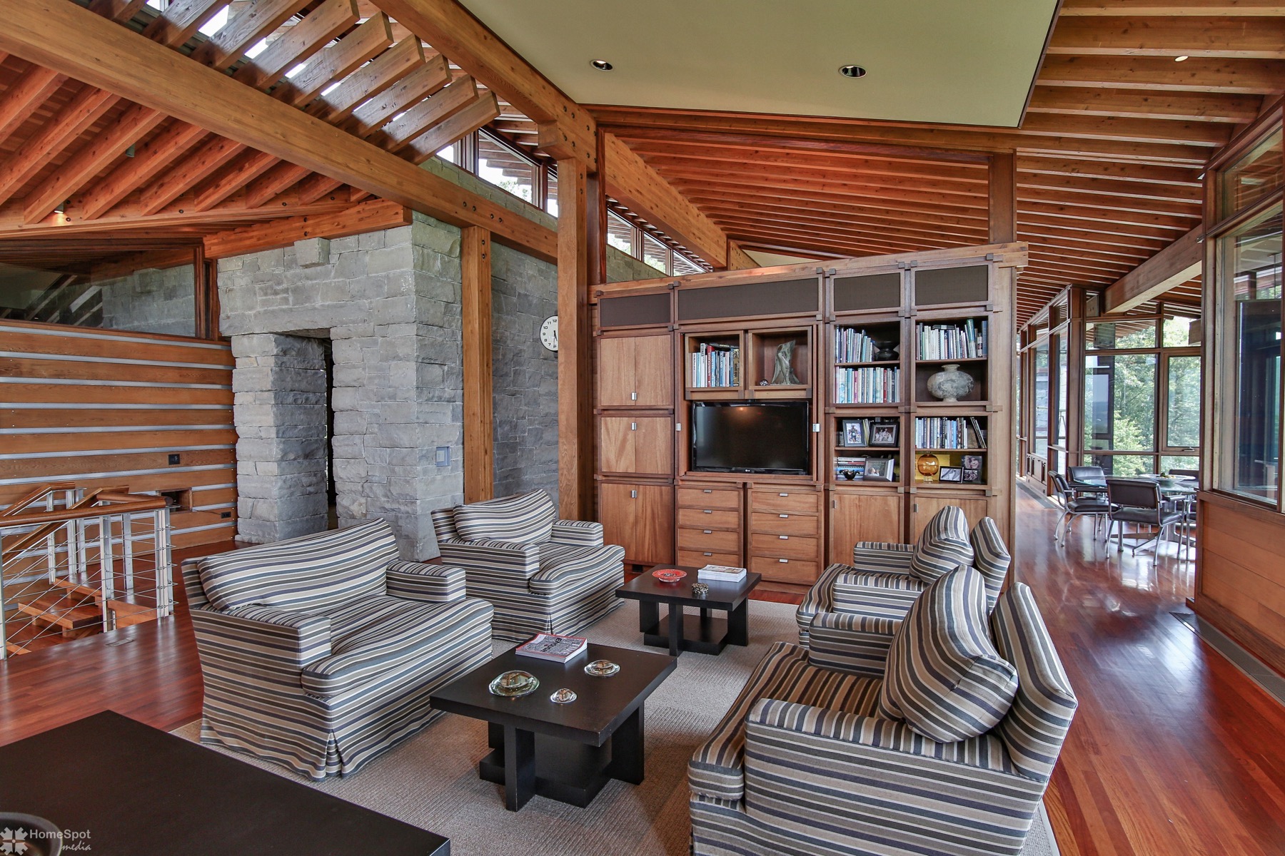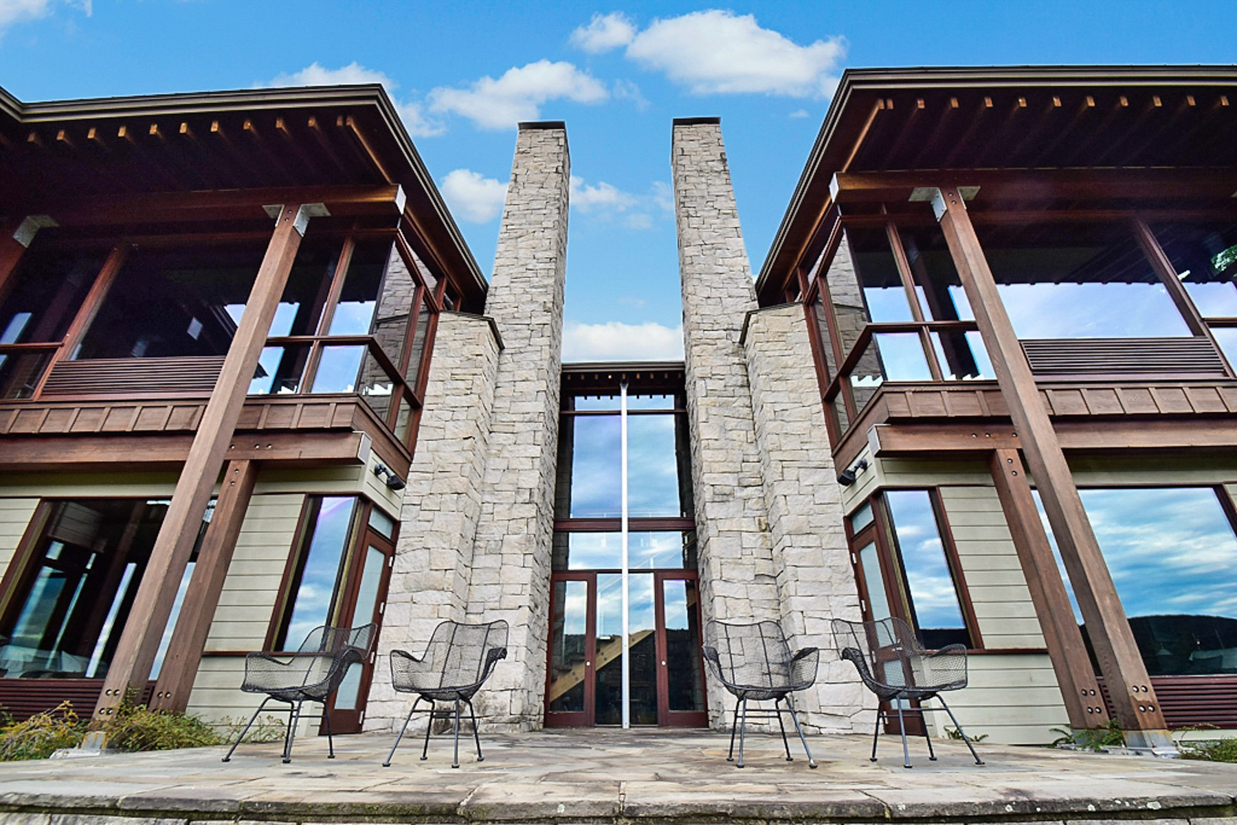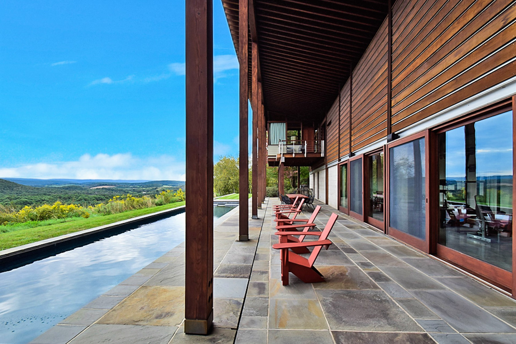 This absolutely majestic and award-winning family compound offers nearly 100 acres of extreme privacy adjacent to Hawk Mountain Sanctuary and its protected landscape of 1400 acres. The home was designed by the firm of celebrated architect Peter Bohlin- known for creating homes for both Bill Gates and Steve Jobs, as well as other iconic designs including Apple stores worldwide. The design is both durable and timeless, allowing the retreat to appear as if it is built into the hillside upon stone ruins from another time. A delicate exposed wood structural skeleton is juxtaposed against massive stone forms- providing a total of 6 fireplaces- and is surrounded by glass walls to allow the movement of sunlight and offer truly stunning views of the mountains and valleys. The finest materials and craftsmanship surround you, and every detail of the home was carefully planned. The property has been featured in "Architectural Digest" and is located within close proximity to both New York City and Philadelphia.